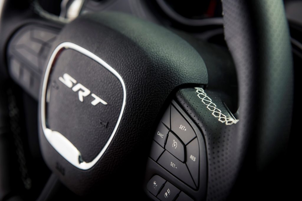 El exterior no deja dudas de que se trata de un ejemplar excepcional, con elementos ornamentales y funcionales. Las insignias Hellcat son el sello más distintivo. El cofre SRT en color negro está equipado con conducto de aire central y dos extractores de calor. El alerón trasero no es un mero adorno, sino que aporta carga aerodinámica marcada en 65 kilogramos a velocidad tope. Los rines de aluminio son de 20 pulgadas de diámetro, calzando neumáticos Pirelli 295/45 ZR20. La marca ofrece una sola opción de color para esta versión, la Destroyer Grey, misma que contrasta con las vestiduras al interior en piel Laguna de acabado color Demonic Red. El sonido interior está a cargo de Harman Kardon, integrado por 19 bocinas, subwoofer y amplificador de 825 watts.