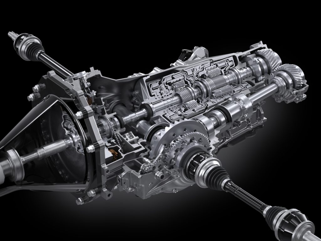 El sistema de propulsión está conectado mediante un torque tube de fibra de carbono a un transaxle trasero que integra una caja automática de 8 velocidades y el motor eléctrico. Este esquema FR asegura una distribución equilibrada del peso y un centro de gravedad extremadamente bajo, uno de los tres pilares de su diseño dinámico.